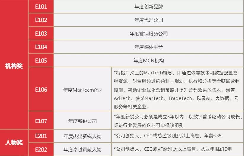今天要给大家介绍的是我们最后一个奖项类别—E类创新营销年度机构&人物奖。