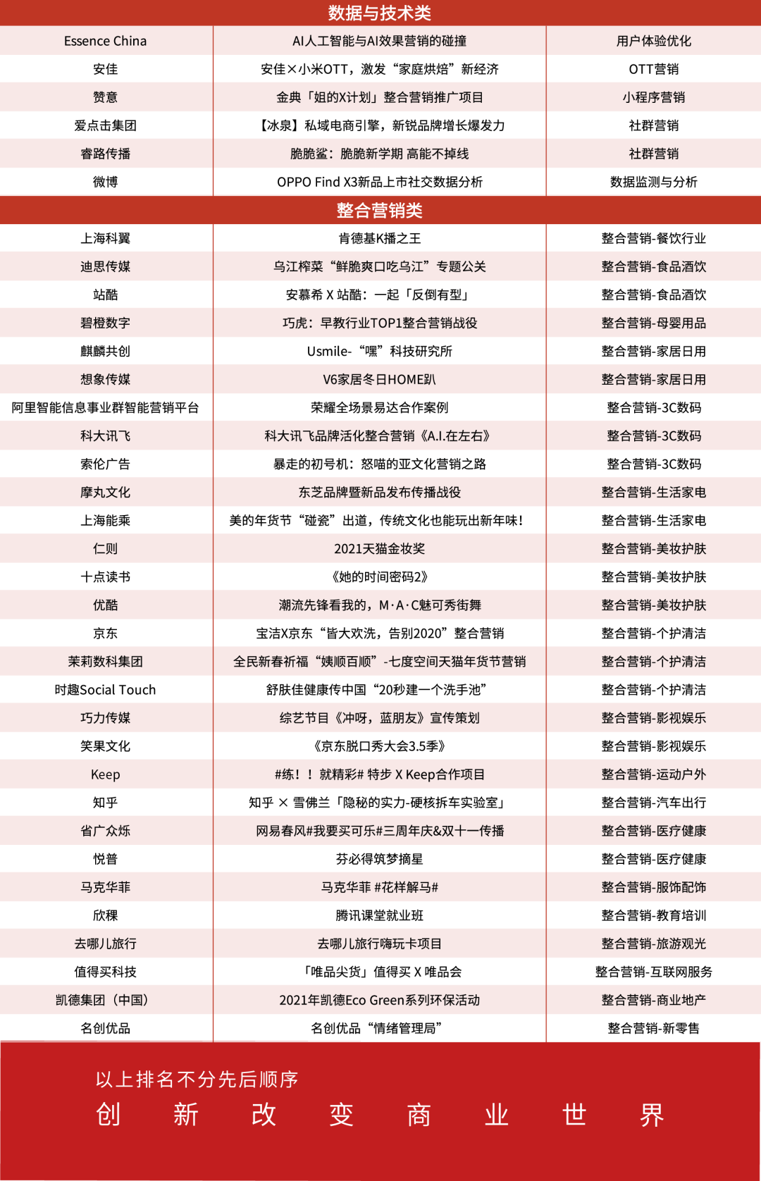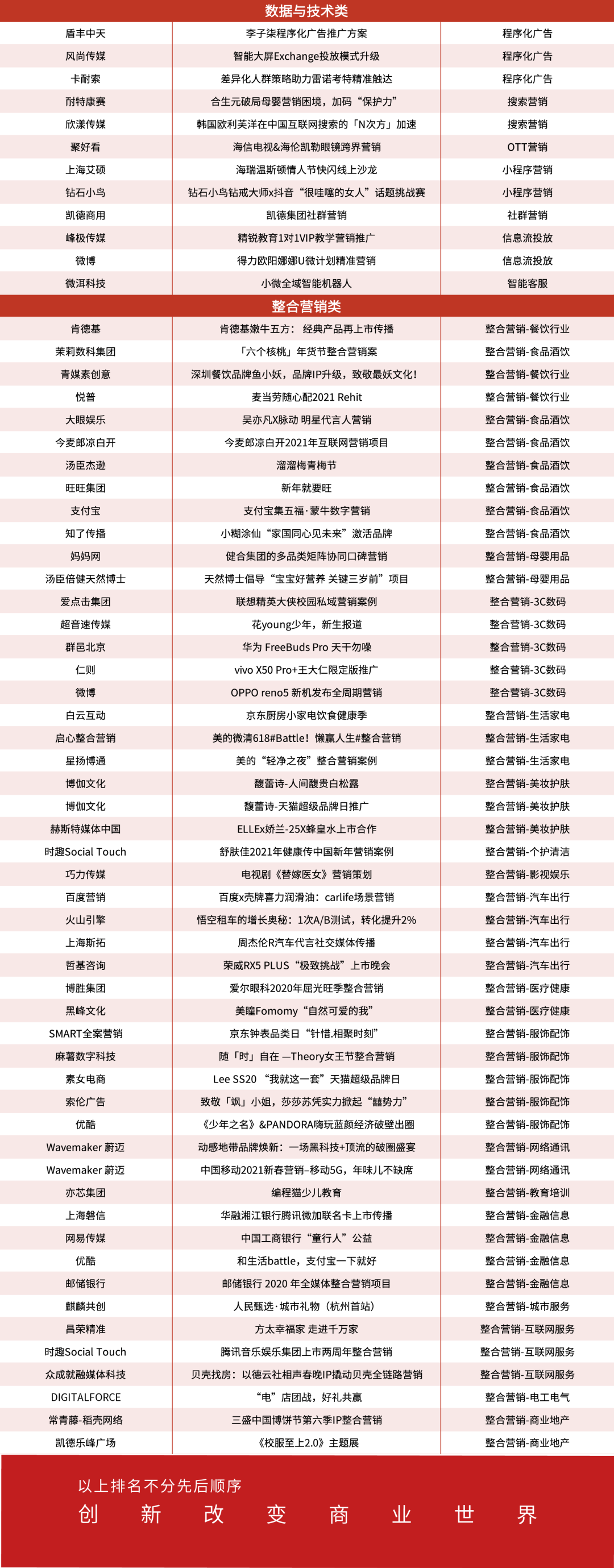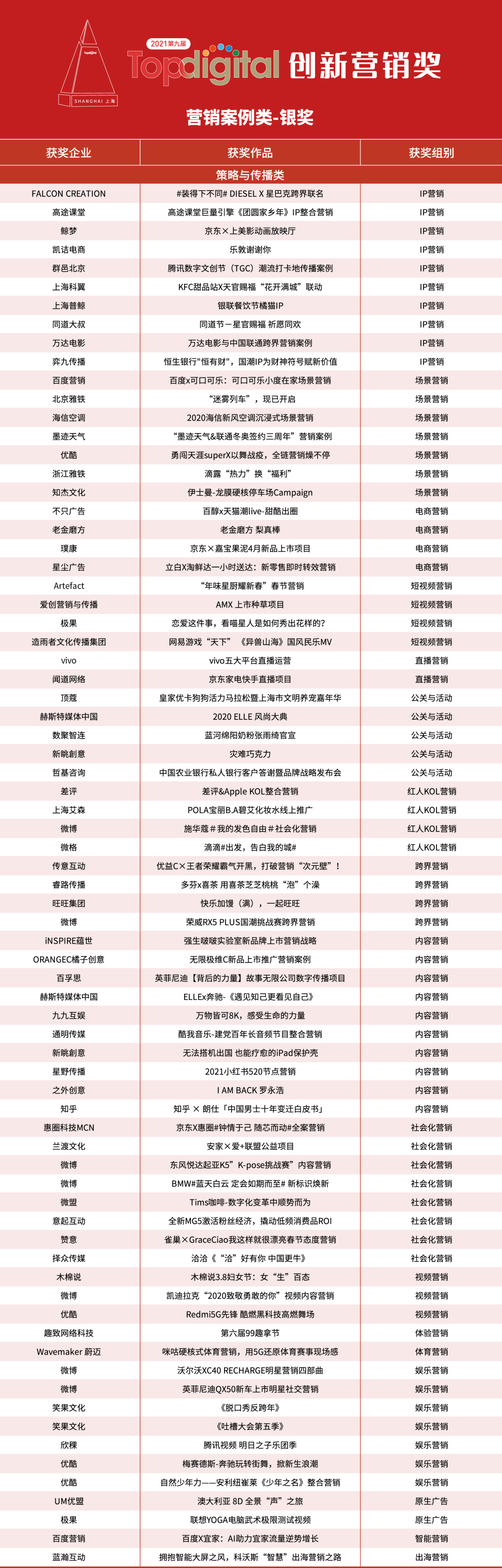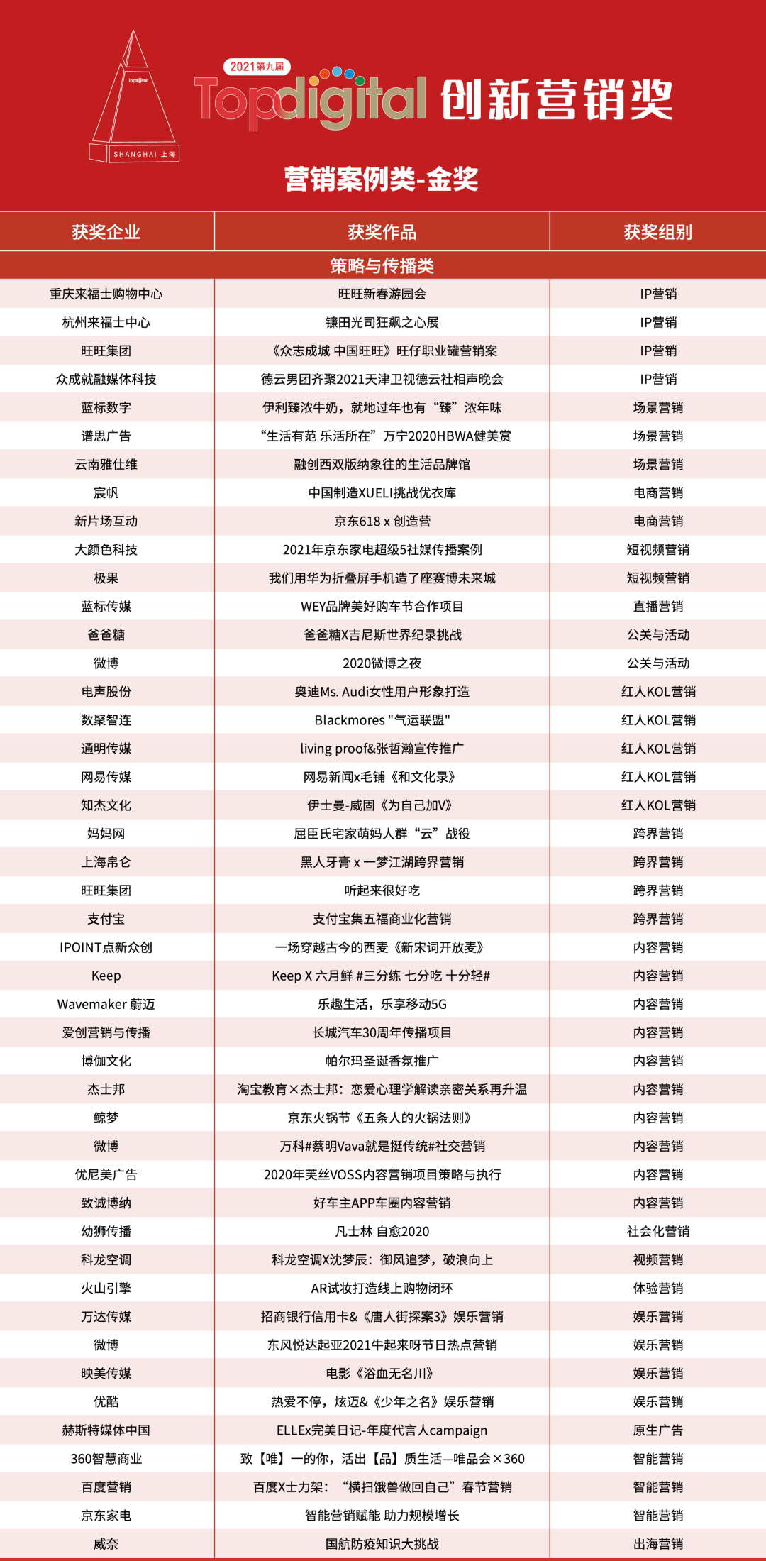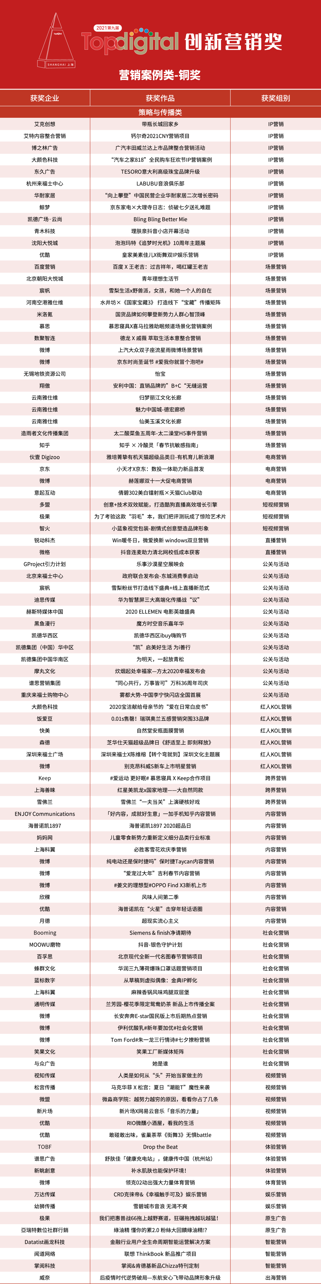 以下为2021第九届TopDigital创新营销案例作品奖获奖结果。