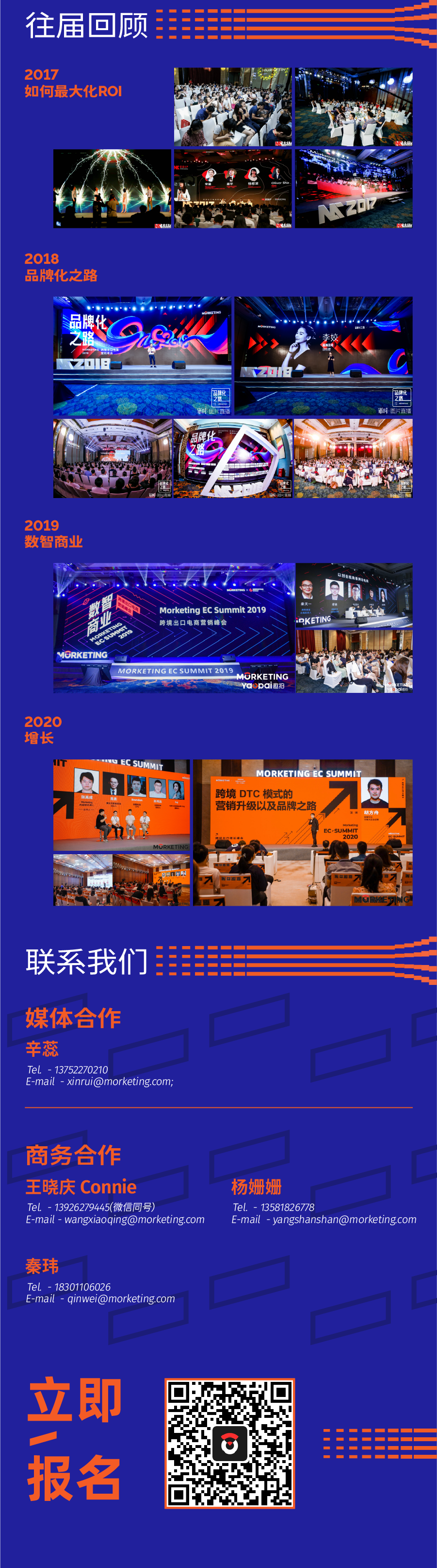 今年大会以乘风·加速为主题,Morketing Global将目光聚焦于出口电商行业趋势与营销实践,届时将与行业人士一起探究,如何才能乘大环境之风,将数字化、DTC、独立站、直播电商等加速落地。