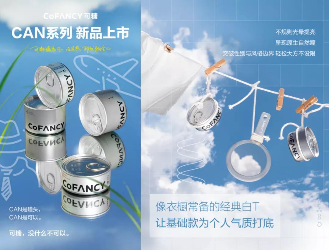 正如CoFANCY可糖近期上新的「CAN系列」罐头美瞳独具的双关涵义,“CAN”字面意思是罐头,但也传递给消费者“自在做自己”的意义。