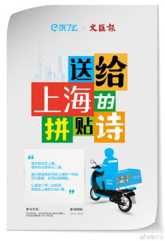 在项目上线后,我们也做了推高和助力。比如把拼贴诗贴到了上海各大商圈蓝骑士的餐箱上, pr团队联合《文汇报》发起了拼贴诗UGC征集活动……都对整个活动起到了很好的传播推动。